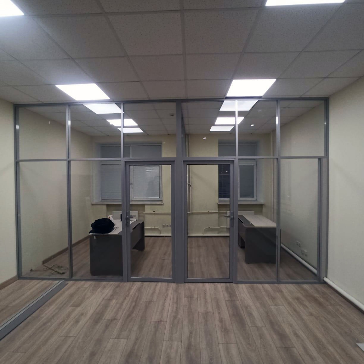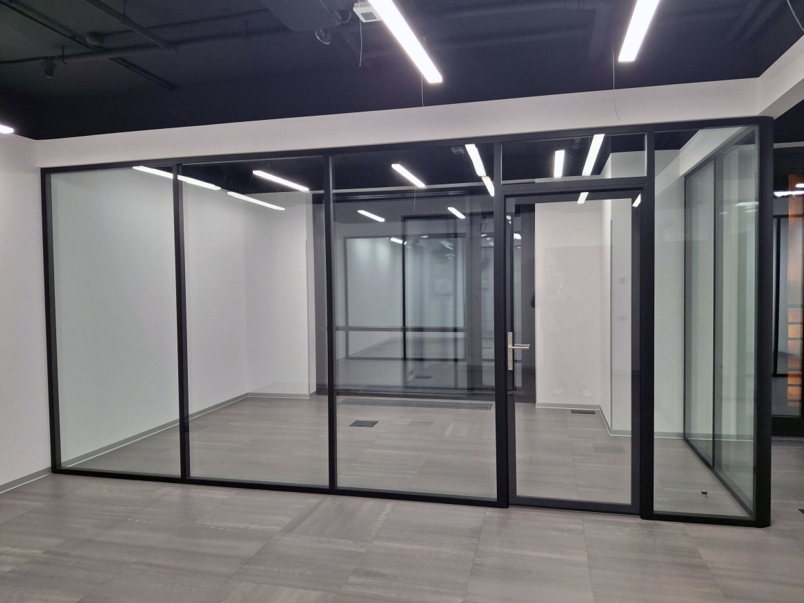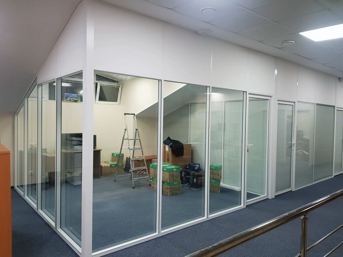 Стационарные каркасные перегородки в алюминиевом профиле где используется две линии стеклянного заполнения