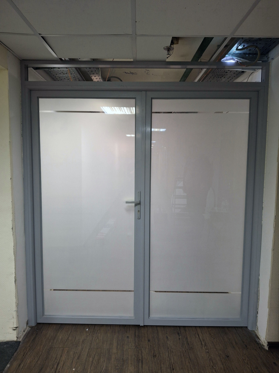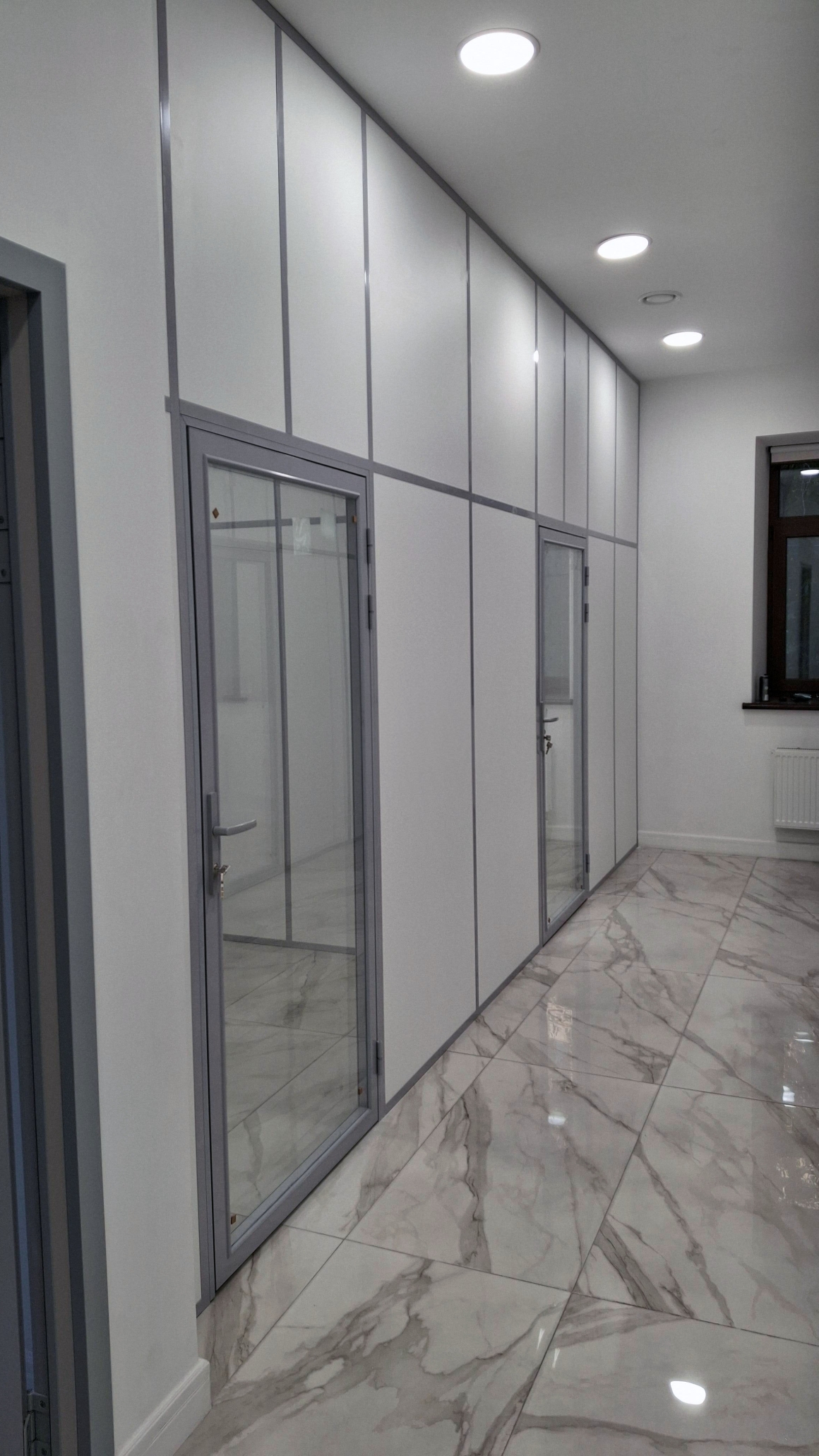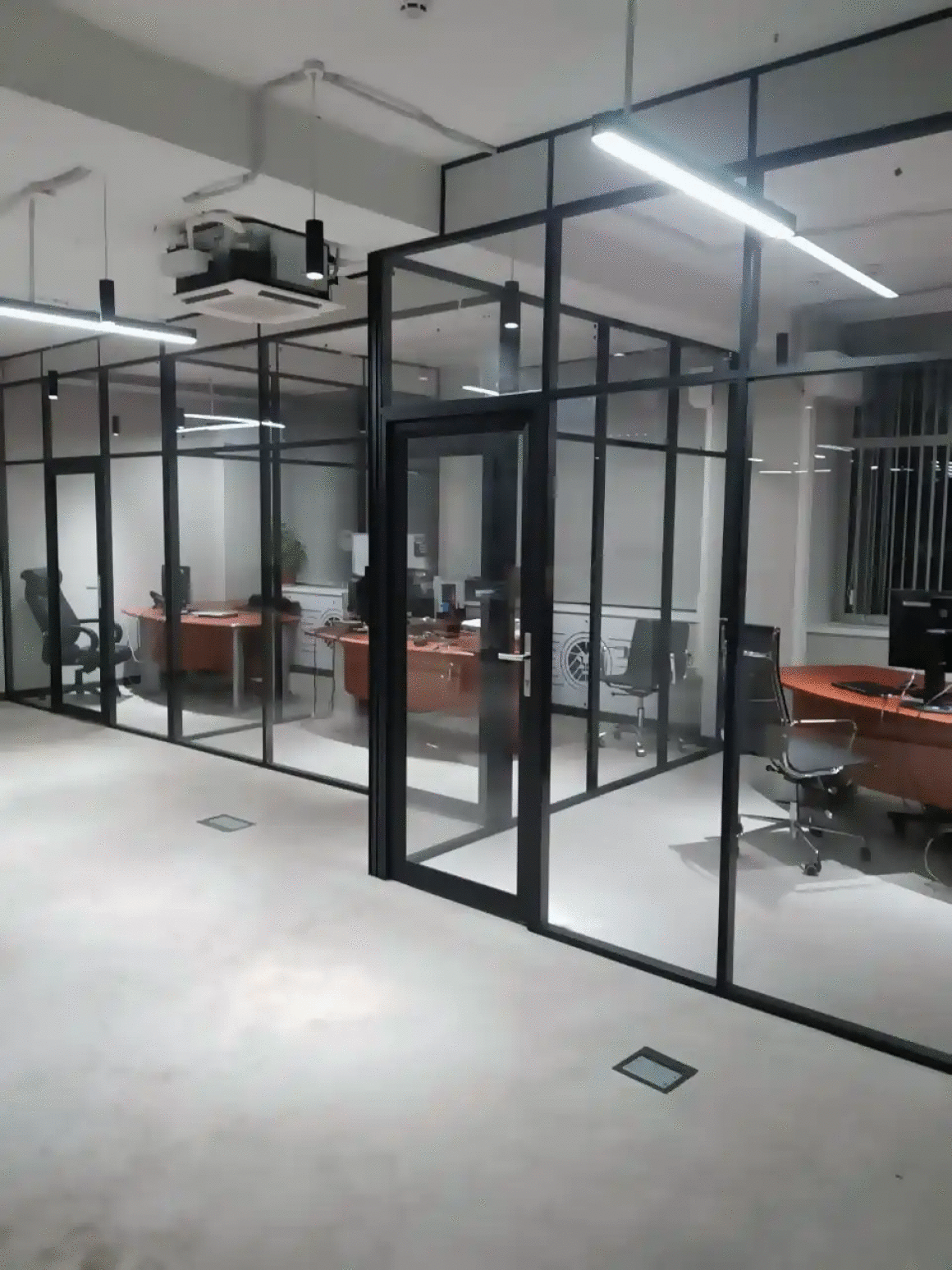 Стационарные каркасные перегородки в алюминиевом профиле где используется две линии стеклянного заполнения