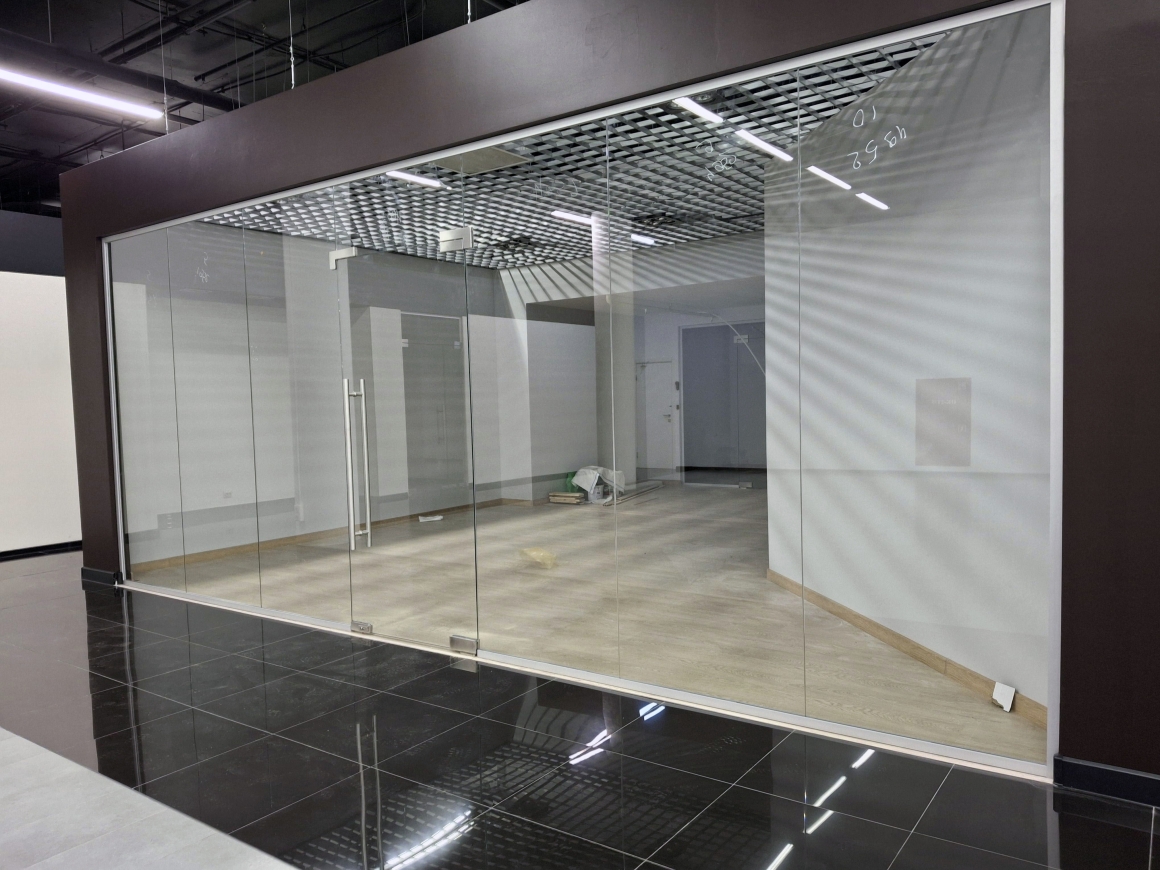 Стеклянная перегородка где их главная особенность - отсутствие промежуточных стоек: секции стыкуются вплотную с минимальными швами (1–3 мм), формируя визуально непрерывную стеклянную стену