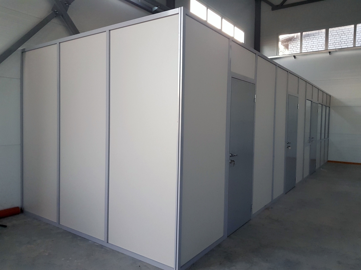 Монтируются без фундамента, на готовый пол, не требуют капитальных изменений в помещении. Состоят из каркаса (обычно алюминиевого профиля) и листового заполнения, могут оснащаться дверьми с надёжной фурнитурой.