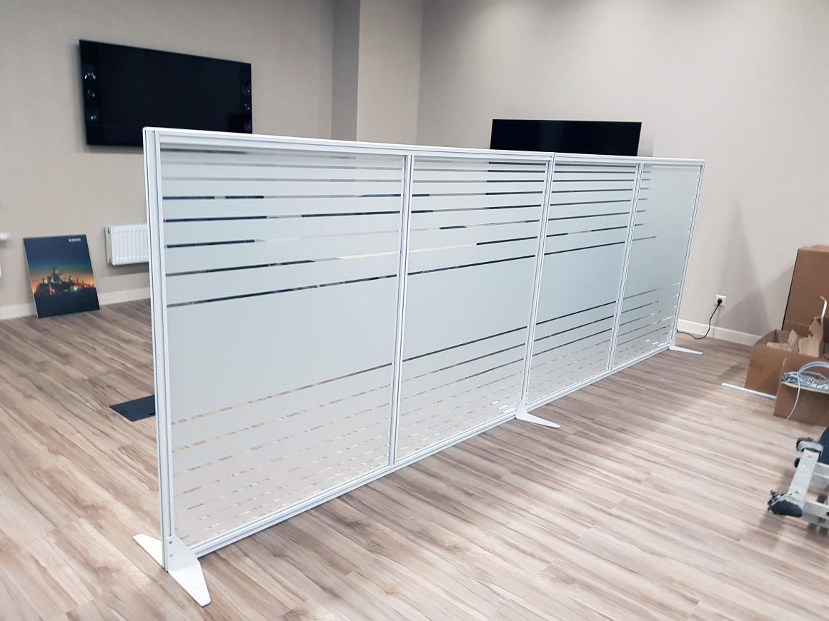 Мобильная перегородка — это быстровозводимая модульная конструкция для зонирования пространства, которая не требует капитального монтажа и может свободно перемещаться.